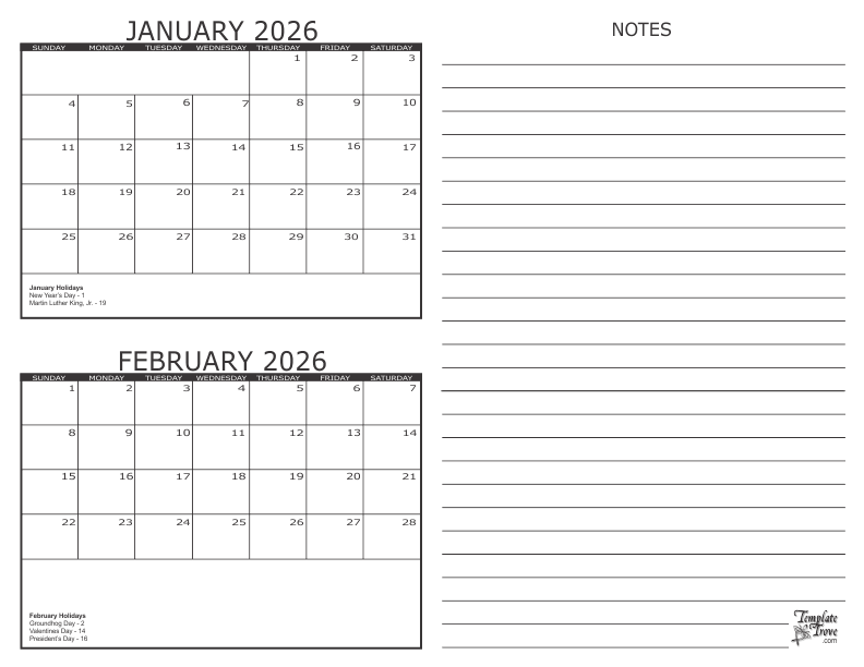 Q: What are the holidays in January and February 2026?